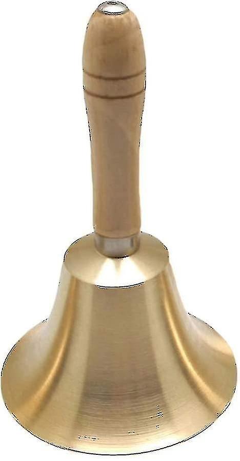 [Premium Quality]: Made of high-quality polished brass, sturdy and durable.[Wood handle Design]: Our handle is made of wood, it is environmentally friendly, durable and can be used for a long time. It is really safety for kids.[Perfect Tinkles]: Our ringing bell comes with a pleasant sound, not overly loud, nor obtrusive, just right on the nose.[Wide Applications]: Perfect as an alarm bell, notification bell, service bell, game bell, pet training bell, Christmas bell, etc. Ideal for bedridden or handicapped family members.[Delicate Design]: Our hand bells were made with excellent craftsmanship, hefty and elegant, plated with golden surface, shiny and smooth. it can be placed anywhere for decoration.