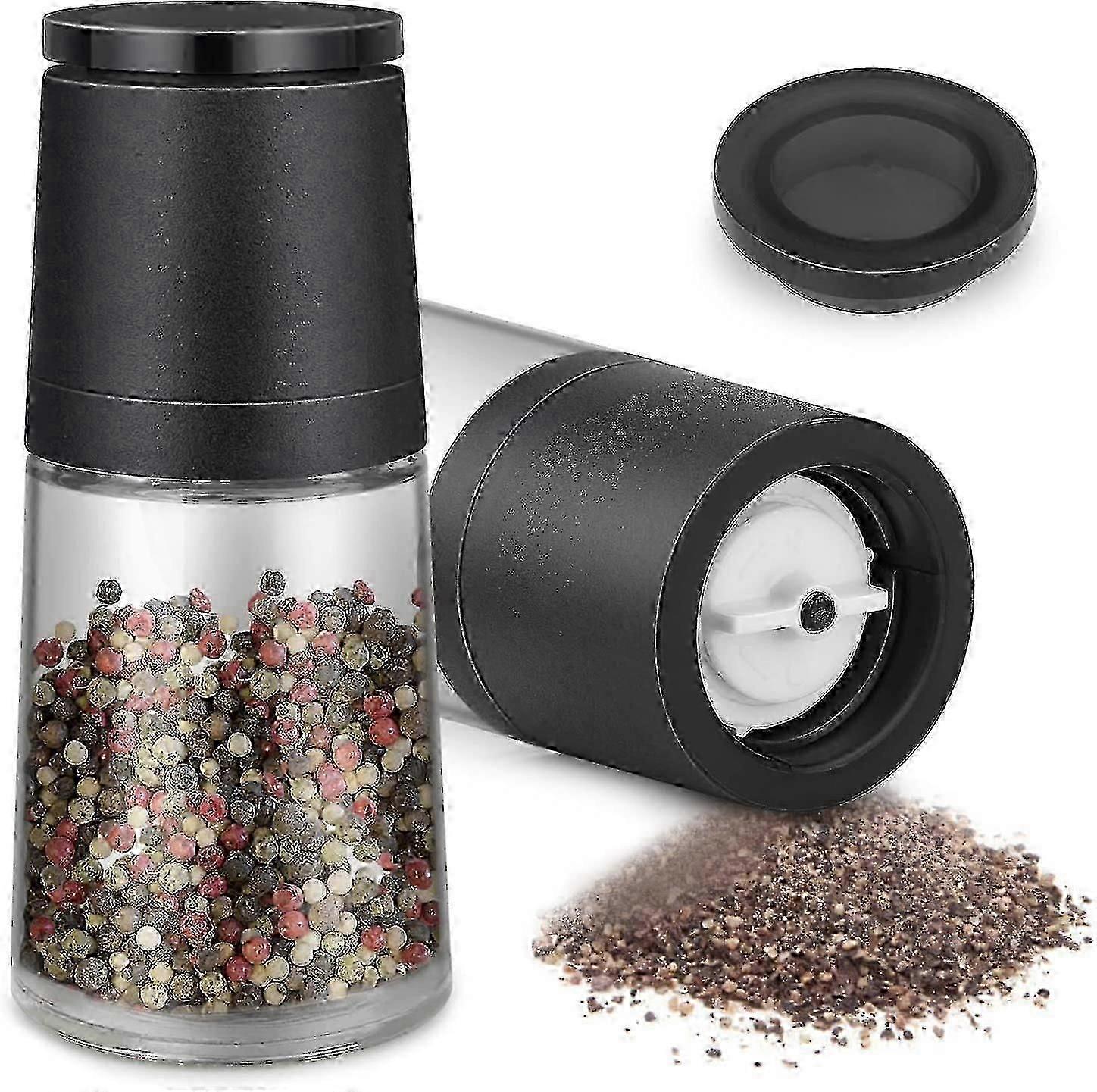 Salt And Pepper Mill,2pcs Adjustable Grind Size Brushed Stainless Steel And Glass Grinders, Black