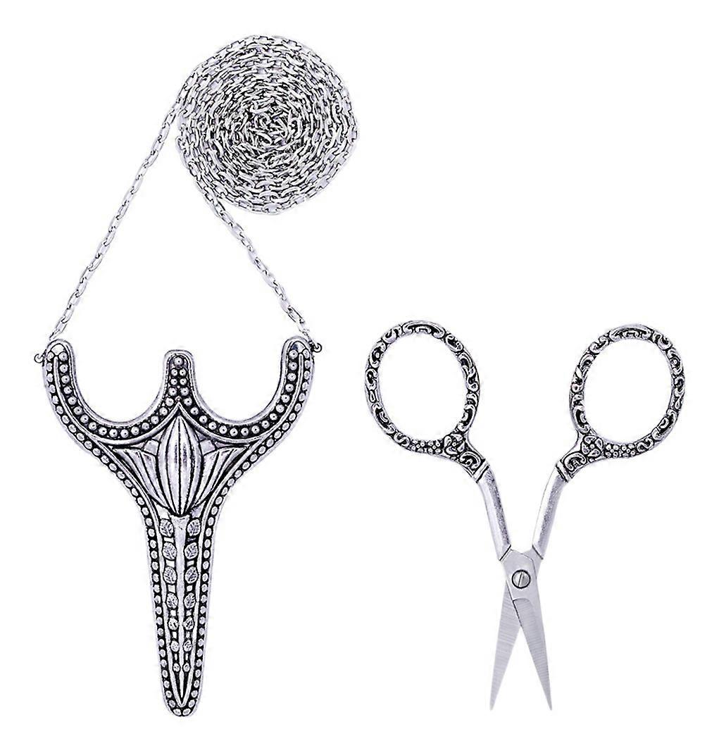 Sewing Scissors Old Fashioned Embroidery Scissors, Stainless Steel Sharp Pointed Sewing Scissors Safety Scissors with Sheath Chain Embroidery Scissors