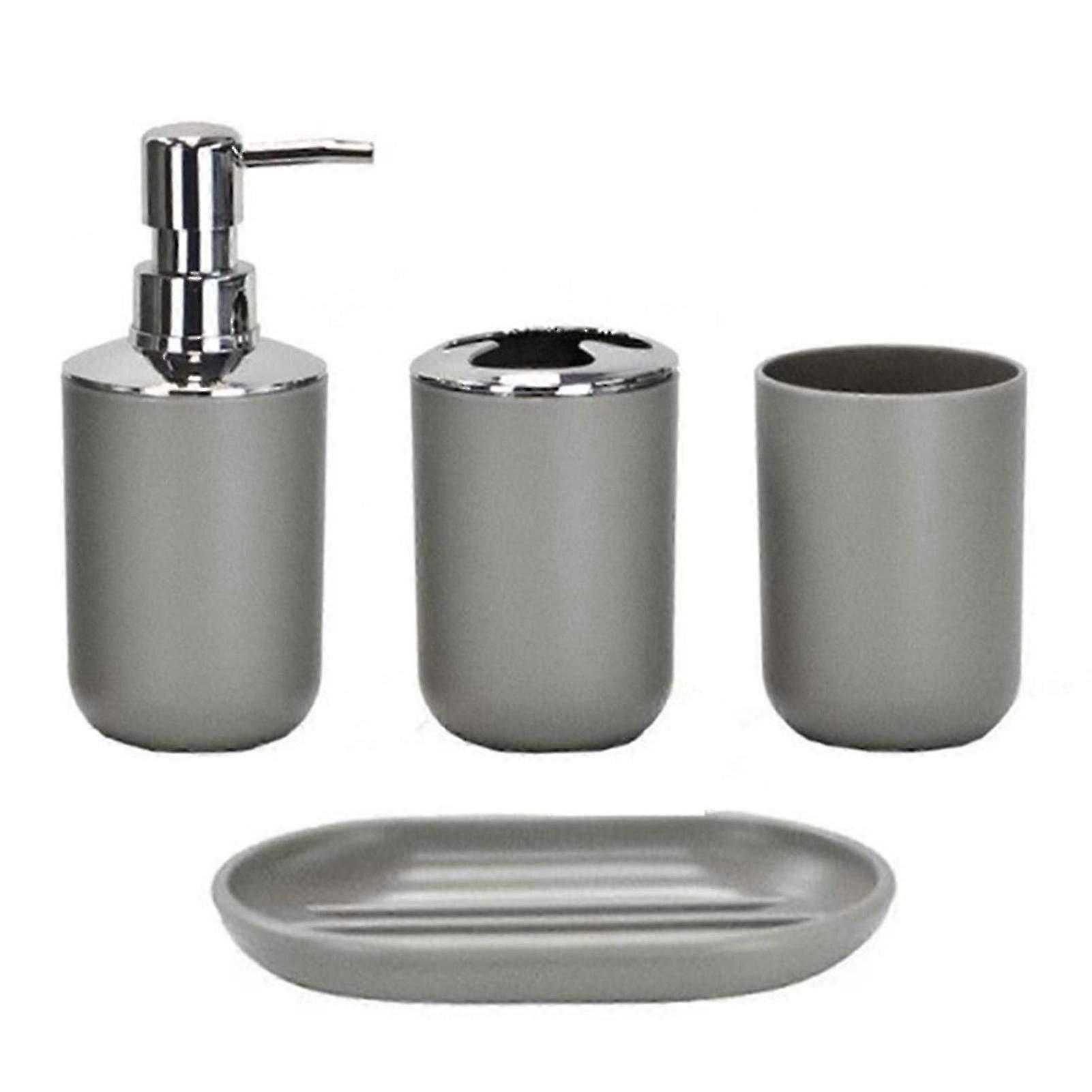 Piece Bathroom Accessory Set With Soap Dispenser, Toothbrush Holder, Tooth Cup And Soap Dish (gray)