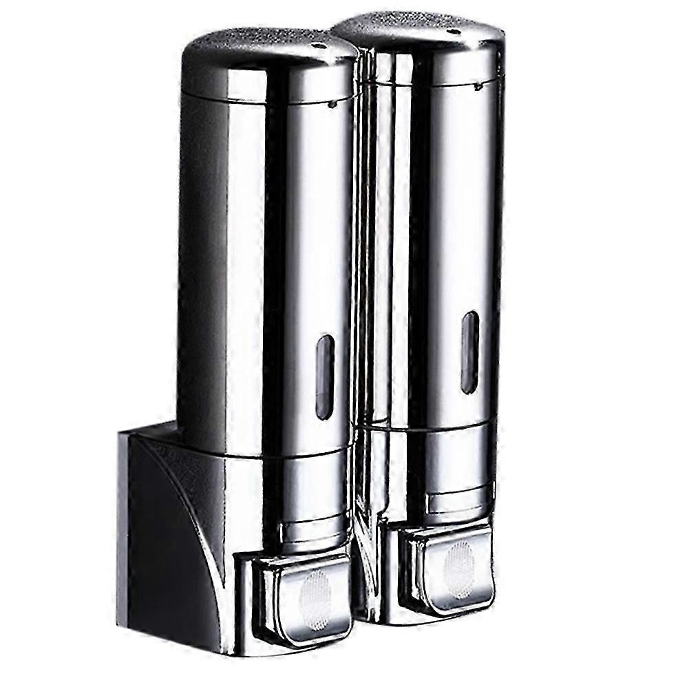 Soap Dispenser Wall Wall-Mount Hotel Shampoo Lotion Liquid Soap Dispenser Stainless Steel Hand Soap-Double grids-