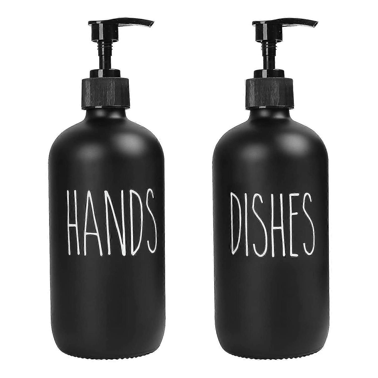 Soap Dispenser Set ,Contains Dish Soap Dispenser and 16 Glass Soap Dispenser with Pump (Black)