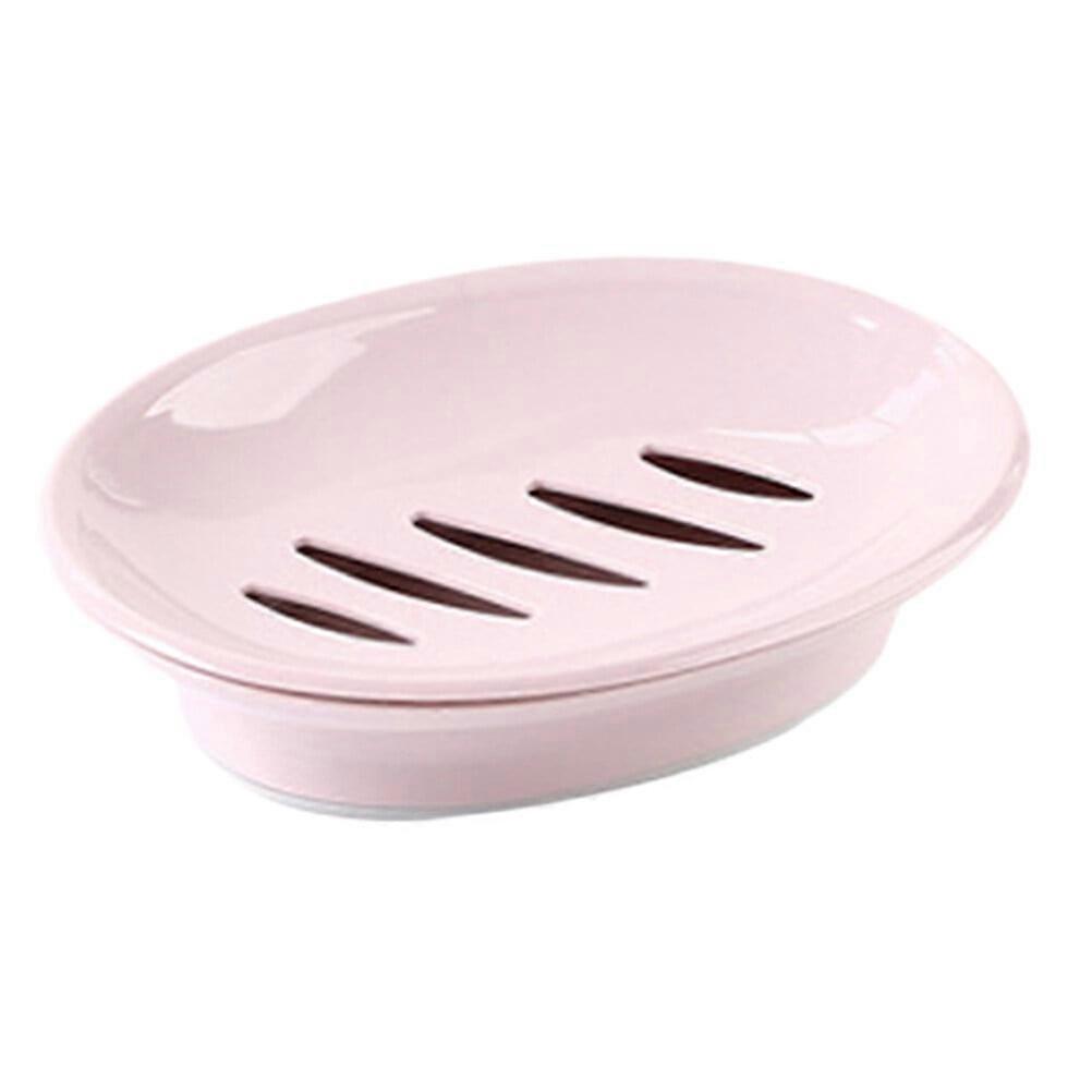 Soap Dish Oval Shaped Double Draining Soap Holder Dish Drainer (Pink)