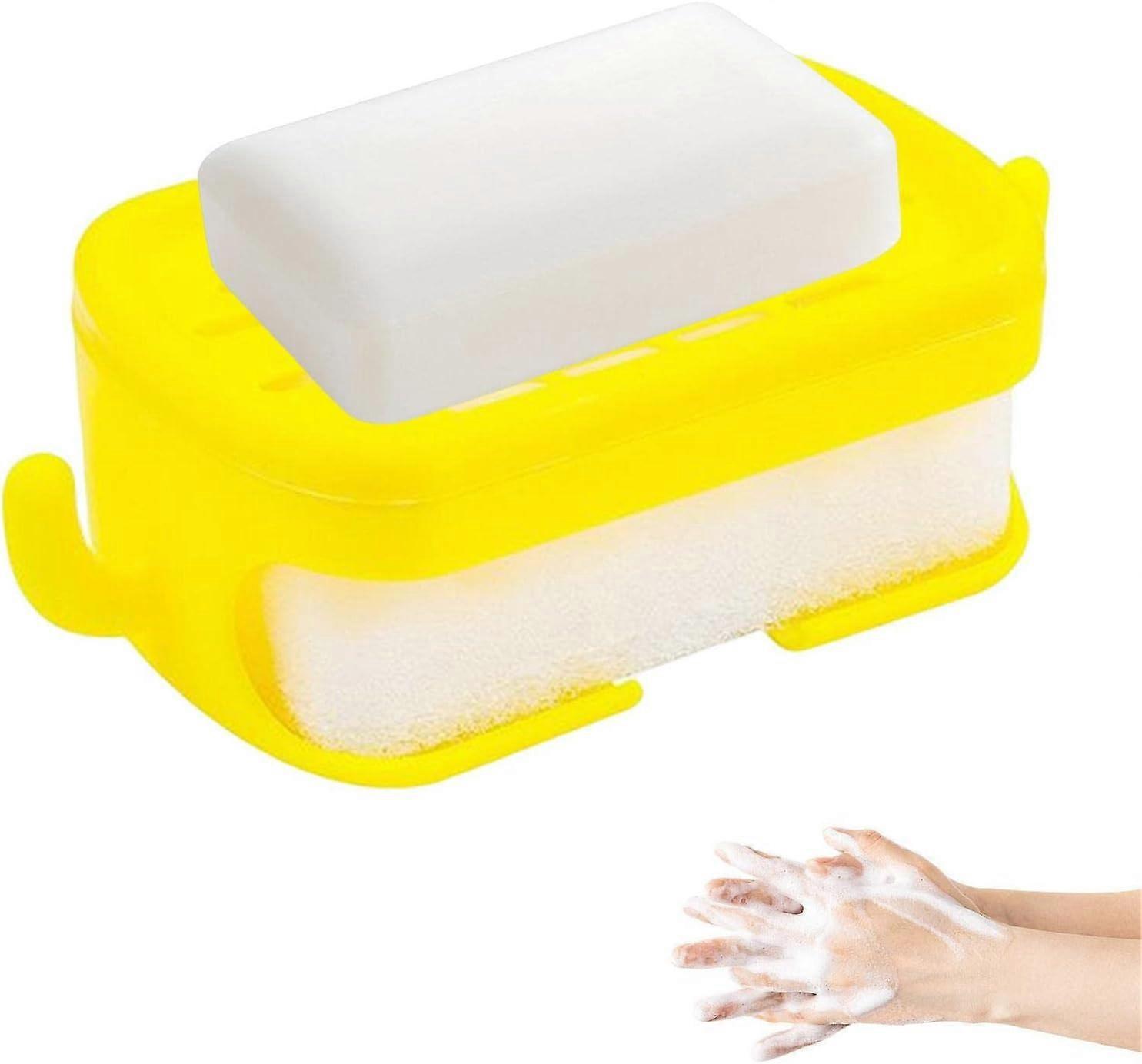Soap Bar Container | Bar Soap Container with Hanger Sponge | No Drilling Household Soap Dish with Buckle for Hotel, Restaurants, Self Draining Back Ad