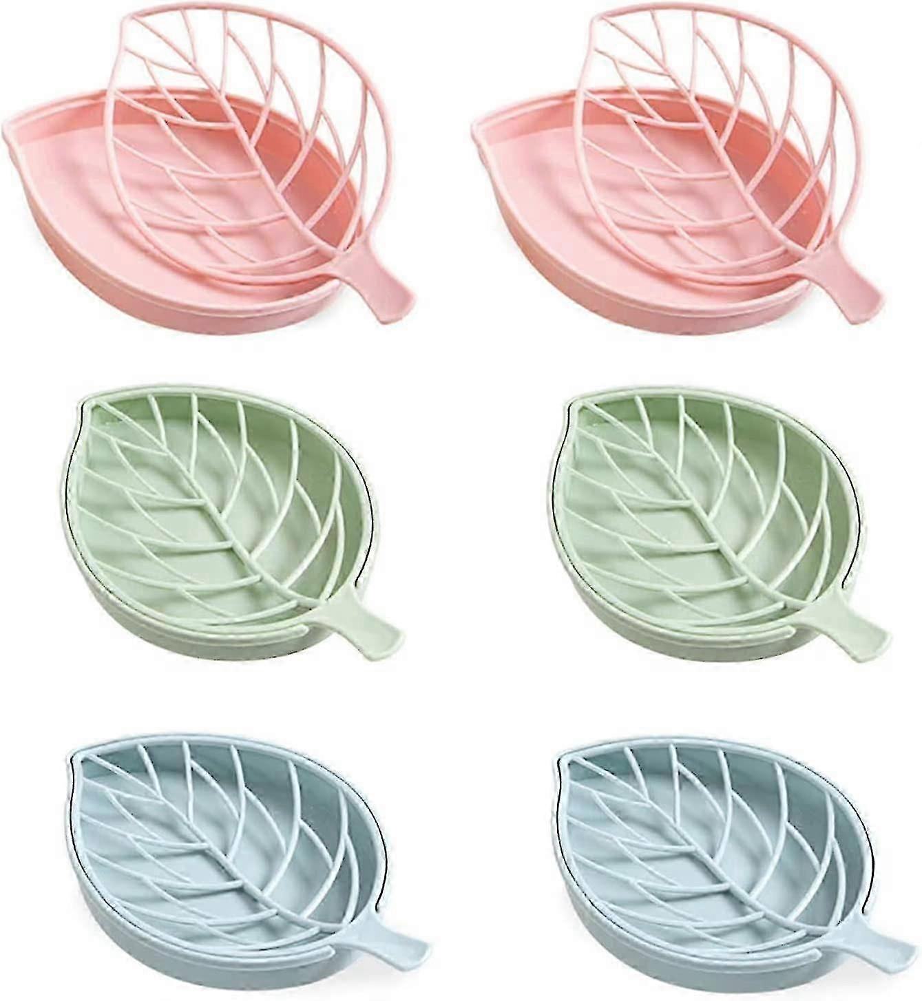 Soap Box Double Drain Soap Holder Leaf Shape Drainage Holder Tray Soap Storage Plate 6 Pcs Soap Holder, Keeps Soap Bar Dry Clean, For Shower Bath Kitc