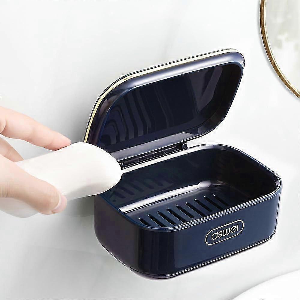 Soap Holder Soap Box Soap Container Case Portable Bar Soap Dishes with Drain Bathroom,Shower,Clean Dry Waterproof Dustproof No Drilling (Navy)