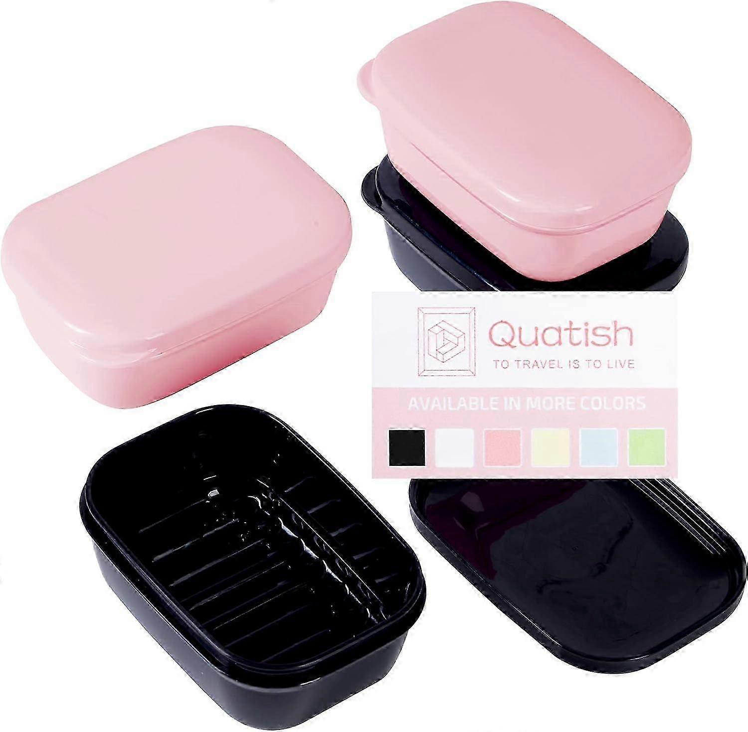 Soap Holder 4pcs,Travel Soap Box with Lid,Portable Soap Box,Leak-proof Soap Box with Perforation,Travel,Camping,Gym(Black,Pink)