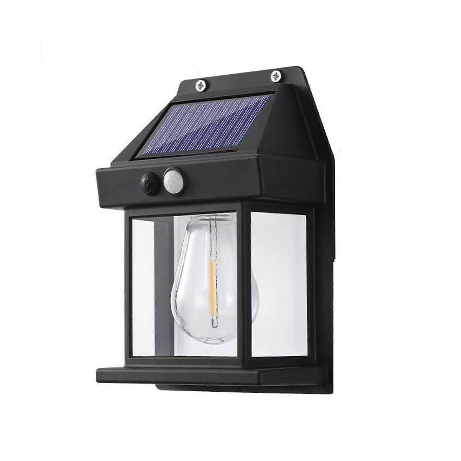 Solar Wall Light Outdoor Human Body Sensor Lamp Tungsten Lamp Villa Courtyard Decorative Lighting Rainproof Night Light (Large Black)