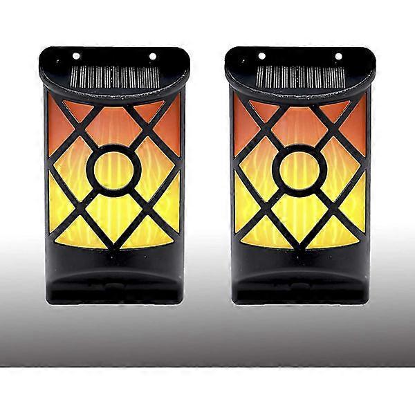 Solar Wall Light Waterproof Flickering Flame Light, Dark Sensor Auto On/Off, Lattice Design for Courtyard Garden, 2-Pack