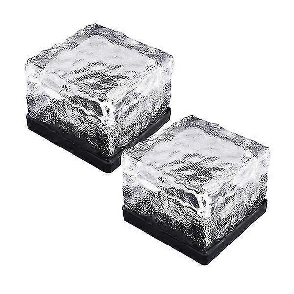 Solar Glass Brick Light Waterproof Led Landscape Light (2pcs) for Garden Courtyard Pathway Patio Lawn Pond - White Light