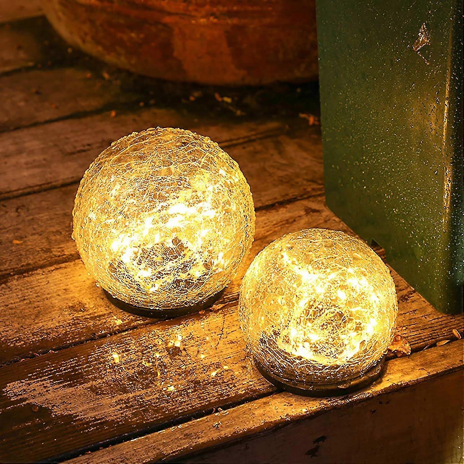Solar Garden Lights Outdoor Cracked Glass Ball Waterproof Wireless Warm White LED Lamp