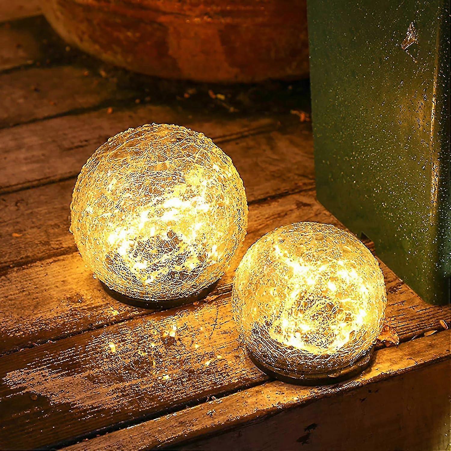 Solar Garden Lights Outdoor Cracked Glass Ball Waterproof Wireless Warm White LED Lamp