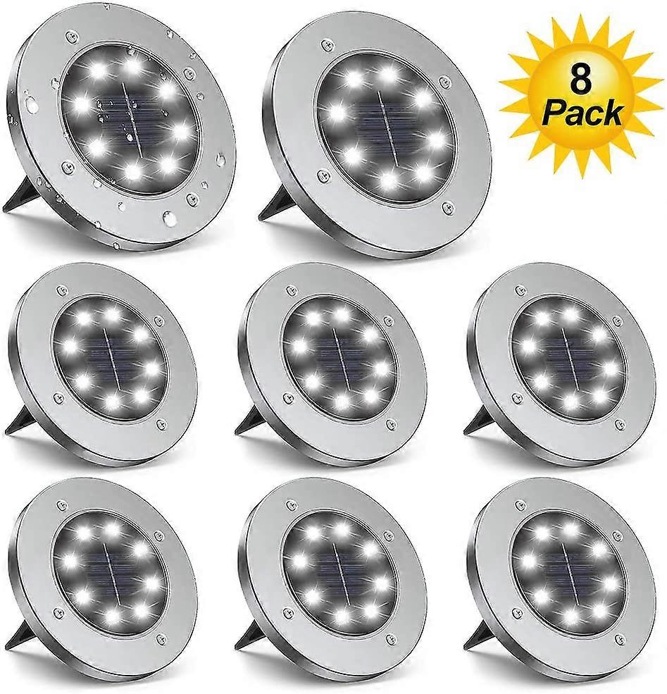 Solar Ground Lights,8 LED Disk Lights Upgraded Outdoor Garden Lights Landscape Lights for Lawn Pathway Yard Deck Patio Walkway,8 Pack White