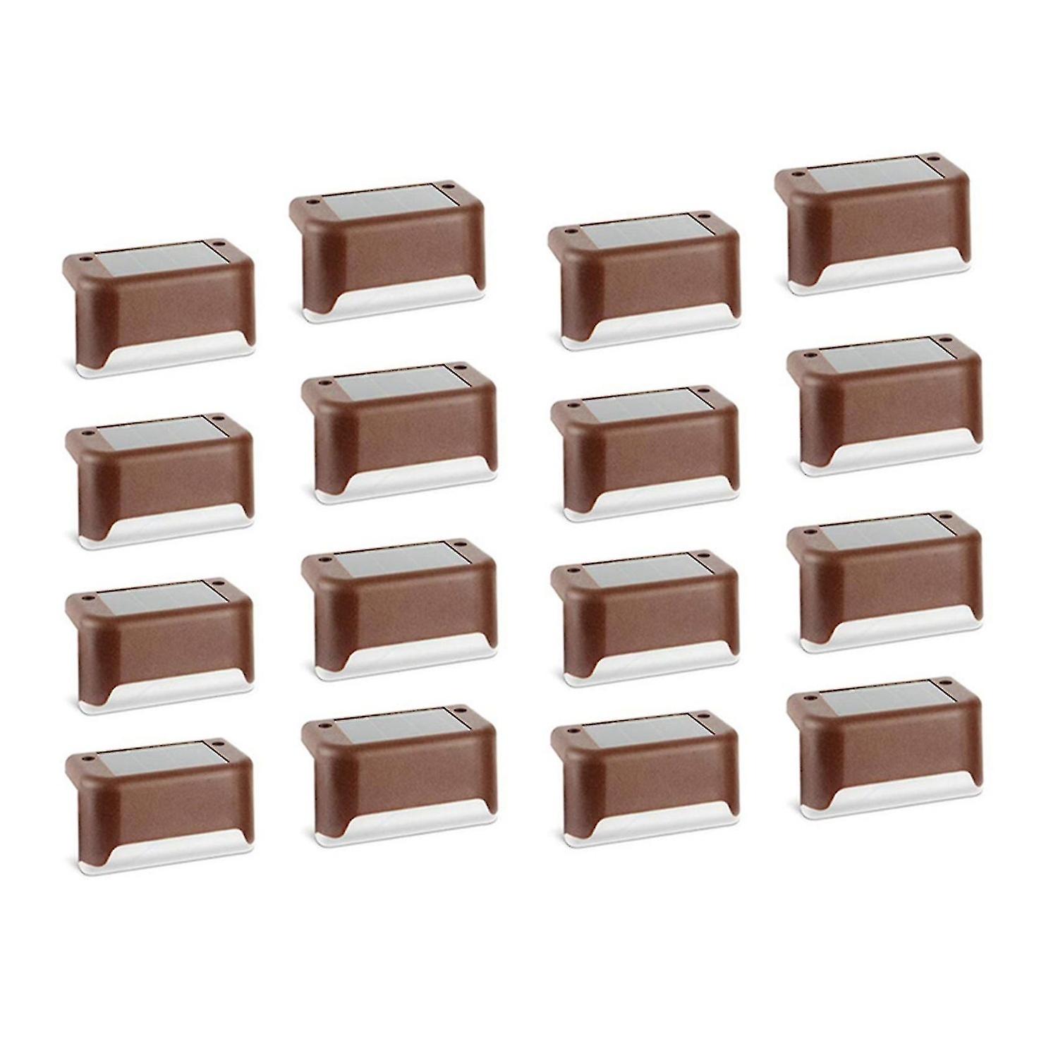 [300mah Battery] Each solar light has 3 lumens, warm white LEDs, and the 16-pack will add a safe and soft glow to your deck, porch, or other outdoor structure, making nighttime walks around the home safe. [Solar] Free lighting, powered by the sun. The only outlay is the al cost, followed by free electricity. No wiring is required, allowing you to place the lights freely. [AUTO-ON] This light has no switch, just pull out the insulation sheet to use. It only takes about 4-5 hours to fully charge on a sunny day and can be turned on automatically throughout the night. [Easy to Install] Install along any edge, you can fix it with double-sided tape or included screws, the size is delicate enough to easily blend into the deck, no need to worry about tripping. Color: Brown Material: Plastic Dimensions: Individual Dimensions: 8 x 4.5 x 4.4 cm Package Contents: 16 Solar Deck Lights The above package contents only, other products are not included. Note: Lighting photography and different monitors may cause the color of the item in the picture to be slightly different from the actual item. The measurement allowance is +/-1-3cm.