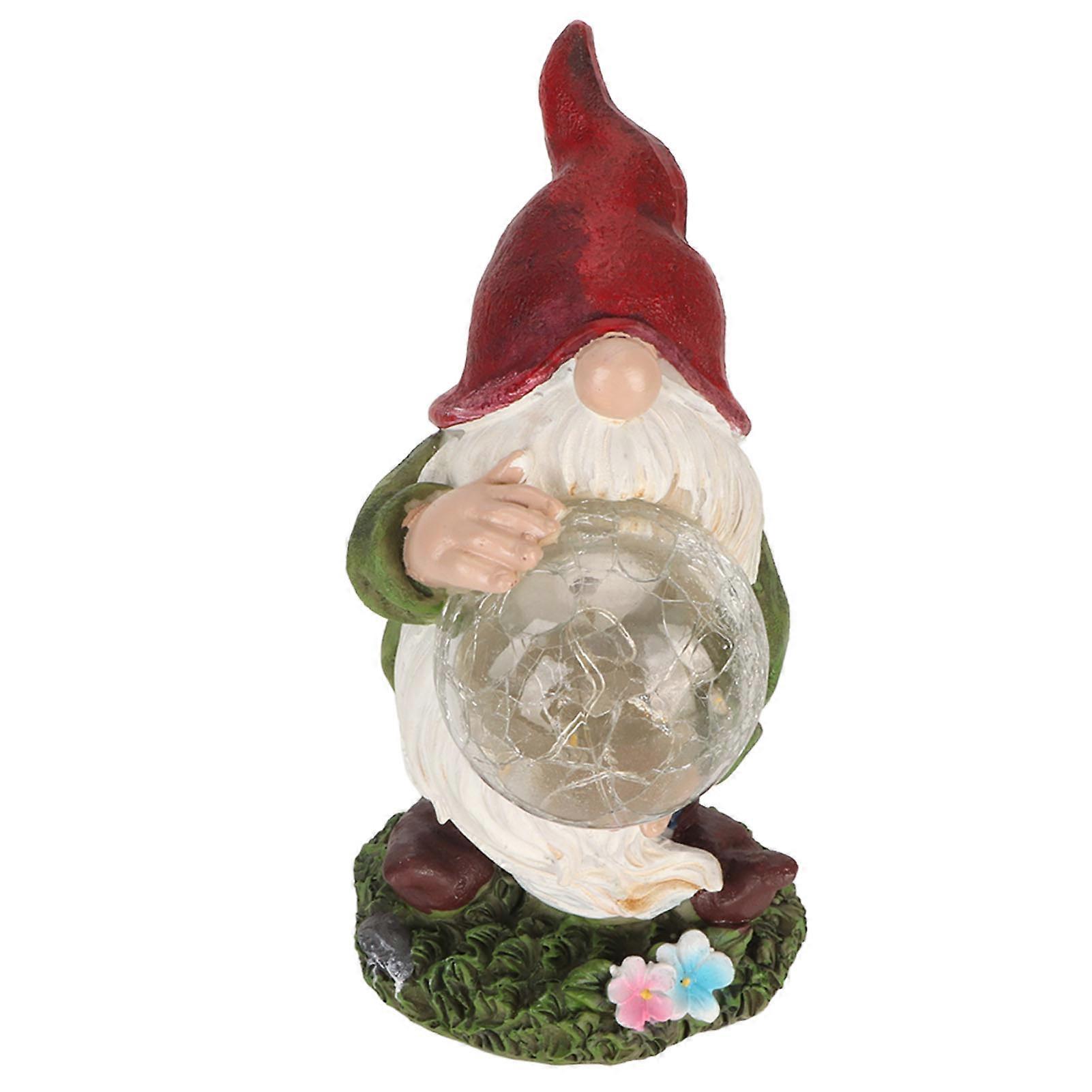 Solar Gnome Statue Hand Painted Colorfast Garden Gnome Statue with Solar Light for Patio Yard Lawn