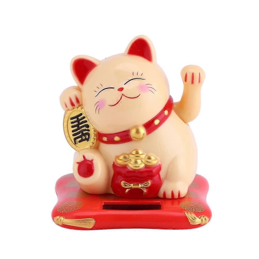 Solar Powered Cute Waving Cat Good Luck Wealth Welcoming Cats Home Display Car Decor(Yellow)
