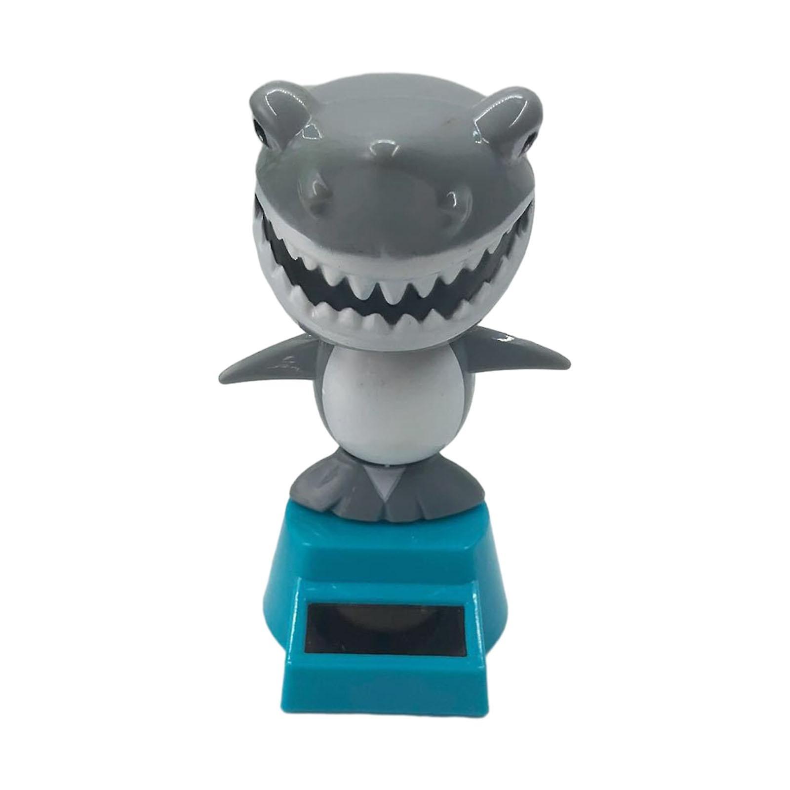 Solar Powered Bobble Head Car Dashboard Decoration Cartoon Shark Figurine Dark Gray