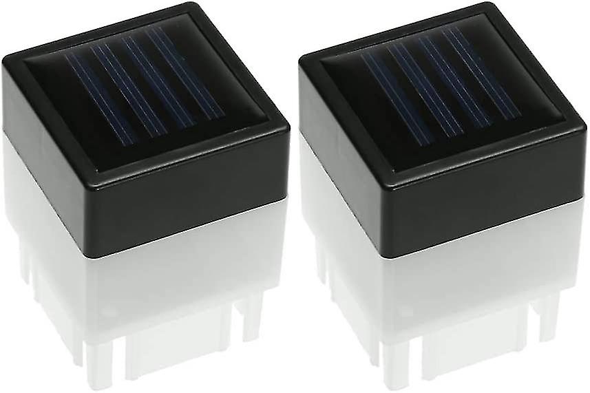 Solar Fence Light Square Solar Post Light, Outdoor Fence Deck Post Cap Light (2Pcs, Black)