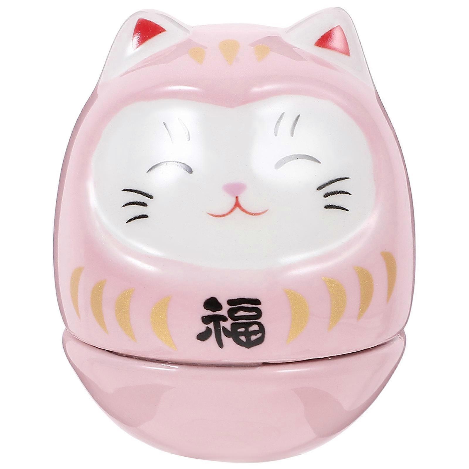 Solar Fortune Cat Statue Tumbler Fortune Cat Figurine Japanese Style Ornament Ceramic 1 Piece