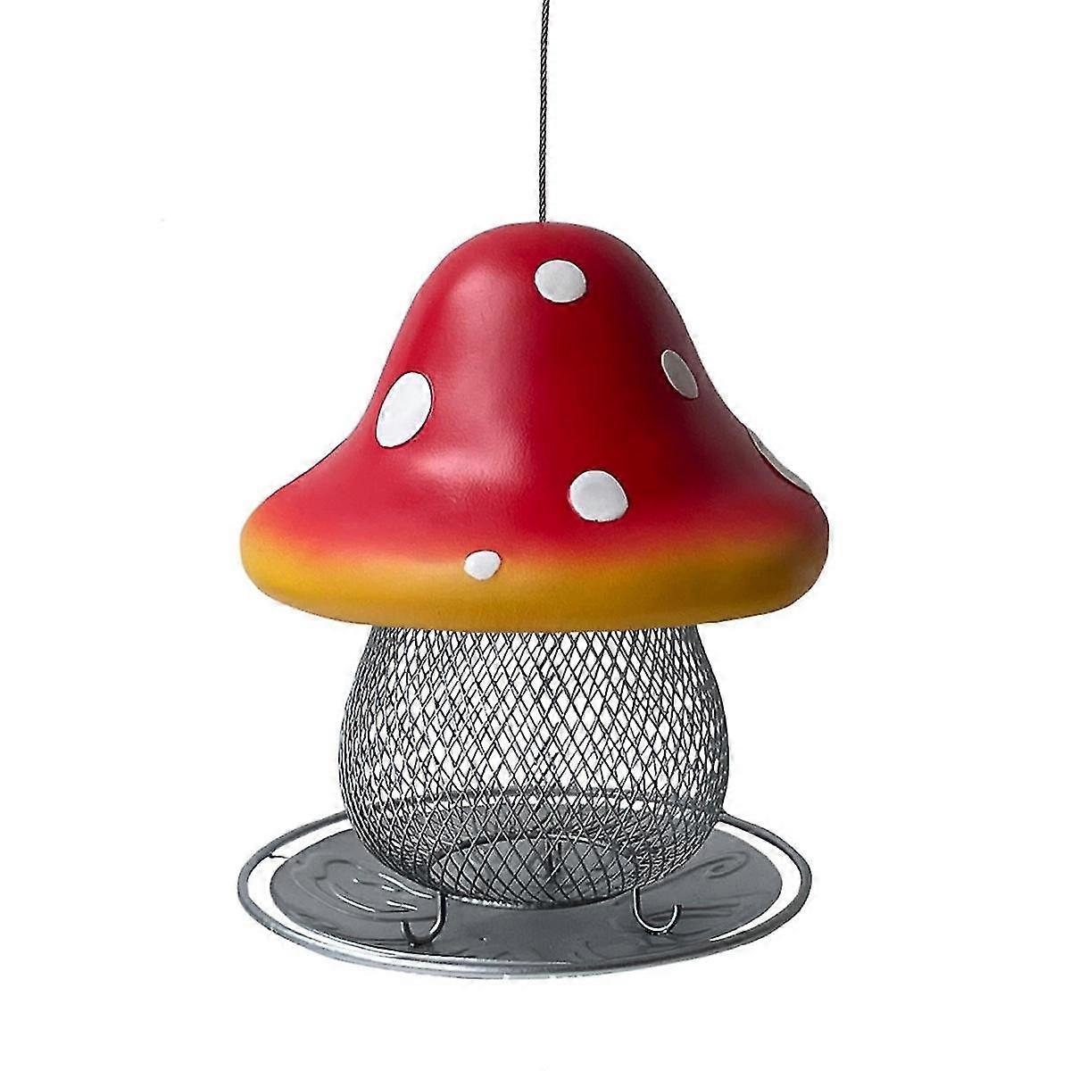 Solar Mushroom Bird Feeder,fairy Garden Wild Bird Feeder Seed Tray, Unique Easy Filling Feeder Yellow