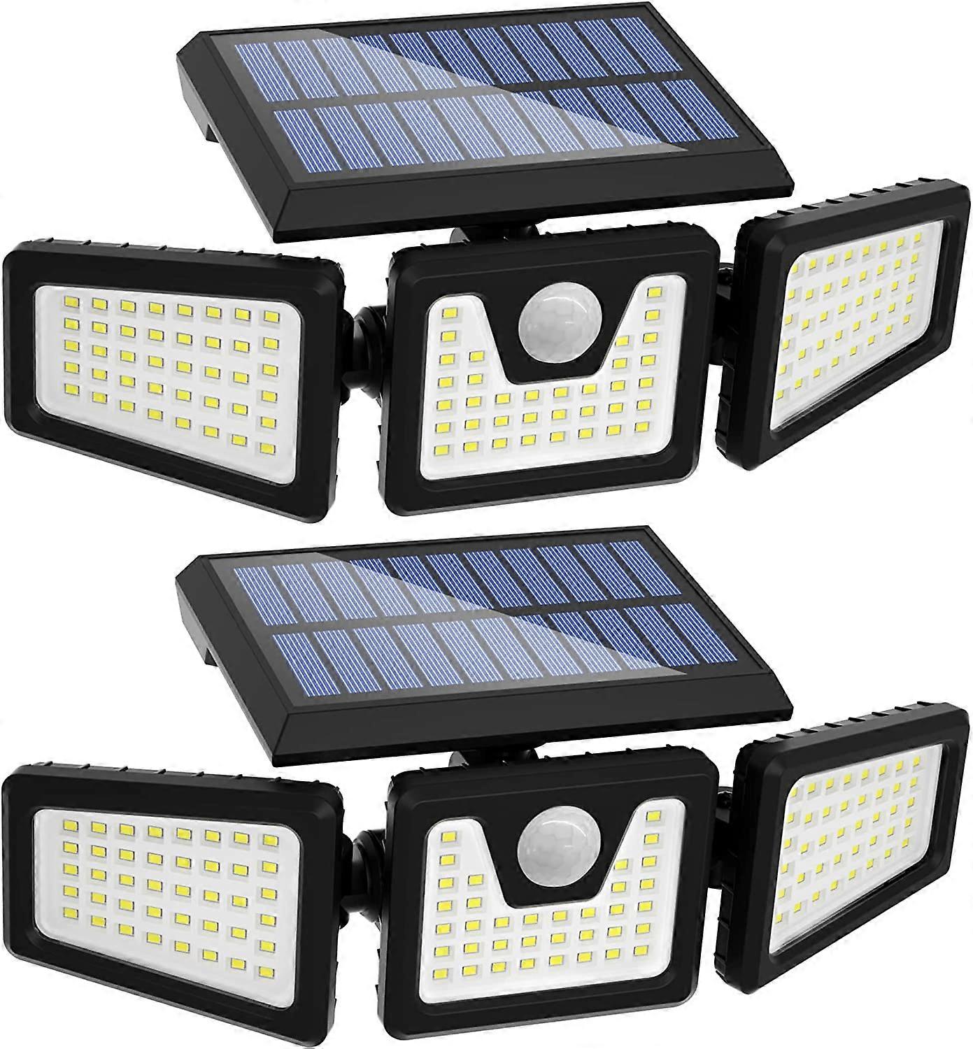 Solar Motion Sensor Security Light, Powerful Outdoor Wall Spot Light With 3 Heads, 550 Lumen 2Pcs