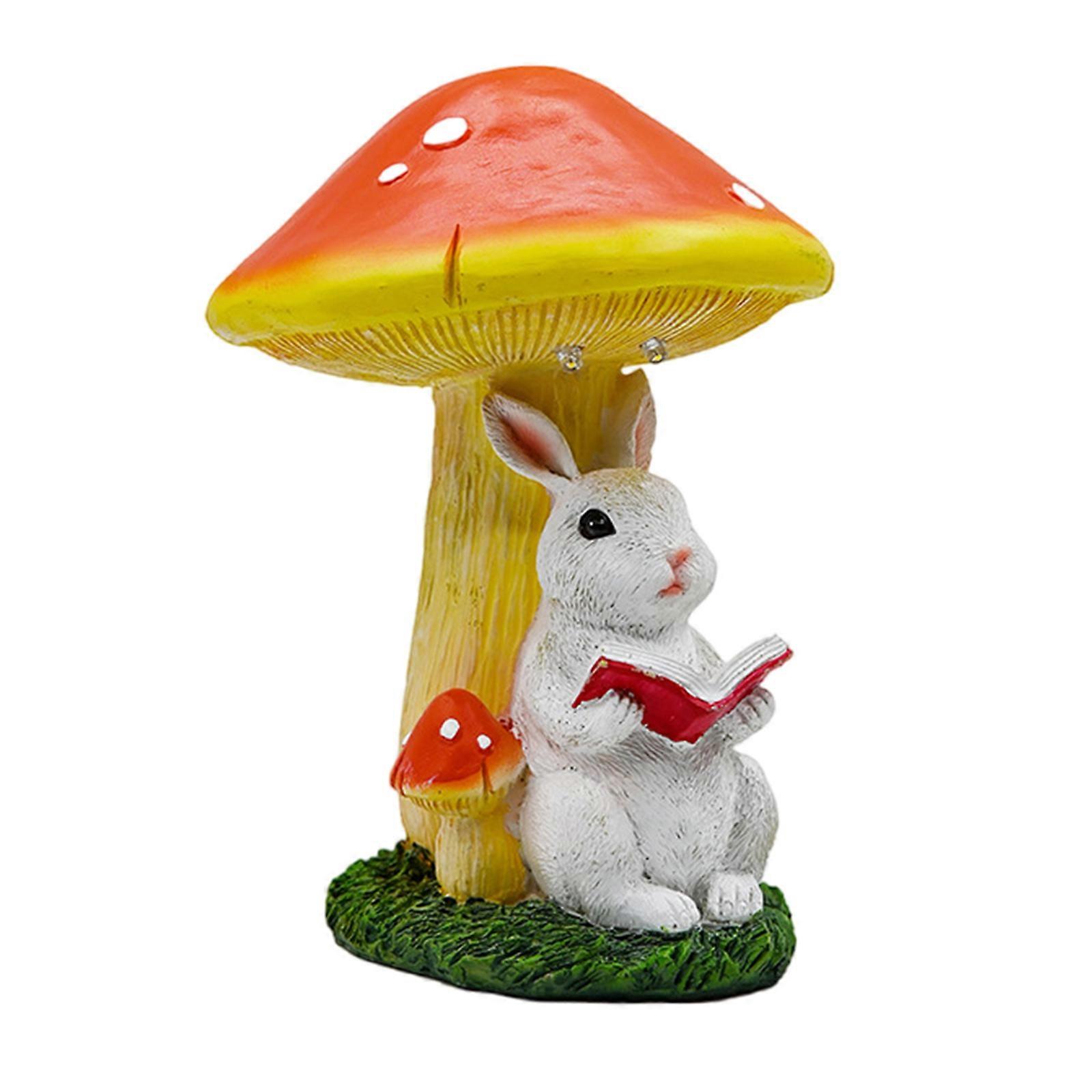 Decorative Mushroom Rabbit Statue with Solar Light Great for Garden and Patio Decors Resin Figurine Weather Resistance