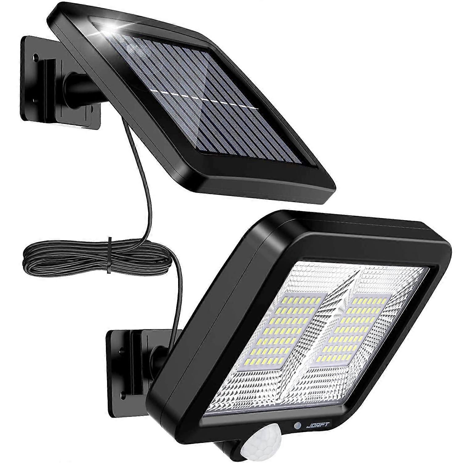 Split DesignCompared with normal solar wall lights in market, solar panel and lighting body is designed separately, you can easily mount the charging panel in place with enough sunlight, like roofthen mount the lighting body on wall, fence, entrance or so to prevent sunlight blocked. you will make the most of the solar lamp with enough sunlight at night. Ultra Bright/Working Long Thanks to the separate design, the solar wall light is equiped with larger solar panel, lighting body and rechargeable battery. the solar wal lights need about 6 hours to be fully charged for battery, and allowing the 98 led solar security lights working throughtout the night. 3 lighting ModesThe solar led security lamp designed with PIR and light sensor, providing 3 lighting modes; mode 1-Motion Sensor, the solar outdoor lamp will only light up at night when human pass by, mode 2-Dimmable Sensor, the solar lighs will stay with dim light until motion detect and turns into strong light at night, mode 3-Always On, the solar wall lights will stay continuous lighting with medium brightness. Under mode 1 and 2 the security lights can working throughout the night, and about 3 hours when on mode 3. simply operationyou can simply choose the mode you need by pressing the button on the lamp. and the solar light will work at night auto after you set the mode. Waterproof Energy SavingMade of high quality and durable ABS materials, the solar pir lights is heat resistant, frost resistant and IP65 waterproof, it can withstand all kinds of severe weather. Absorb sunlight during the day, convert the sun's energy into electricity, and illuminate your house at night. The solar lights outdoor not only protects the environment, but also saves electricity bills.