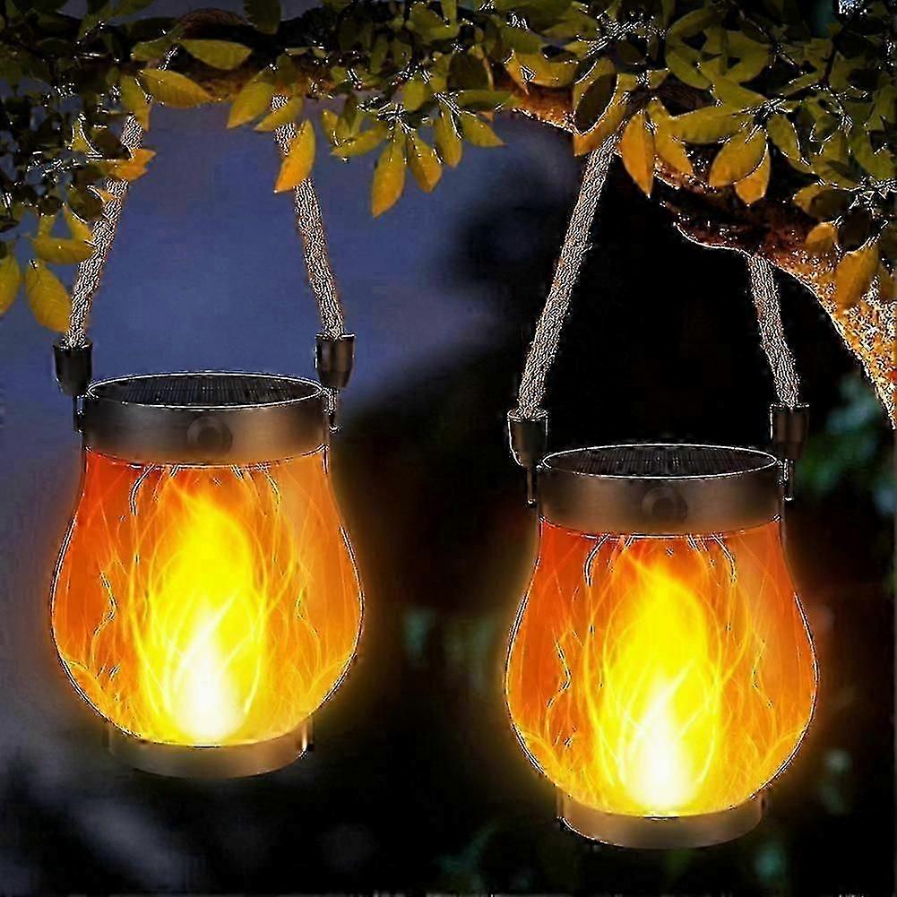 Solar Lanterns Lights Flickering Flame Garden Lights with Dual Charging USB & Solar Outdoor Waterproof Hanging Lantern 2025