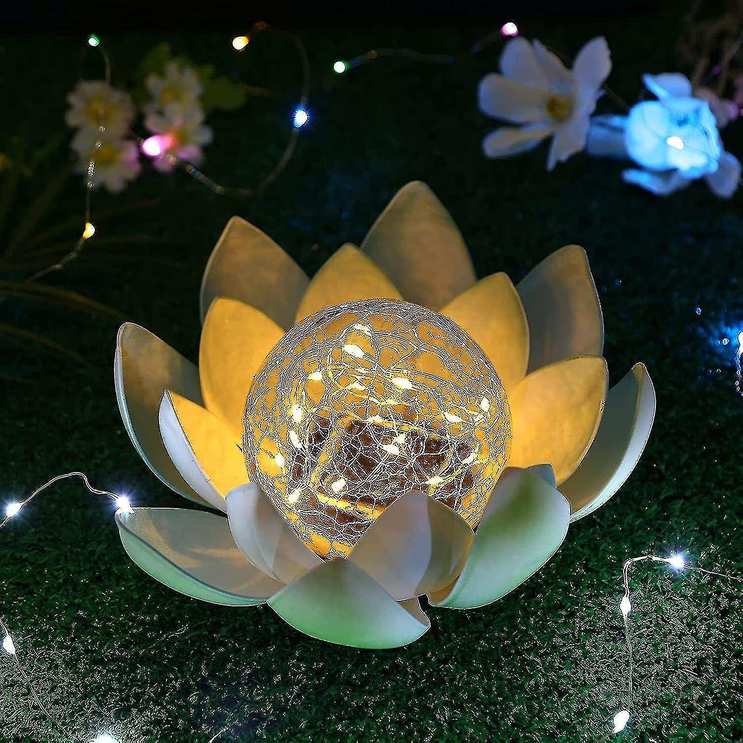 Solar Lotus Light, Outdoor Garden Solar Light, Amber Cracked Glass Garden Light, LED Lotus