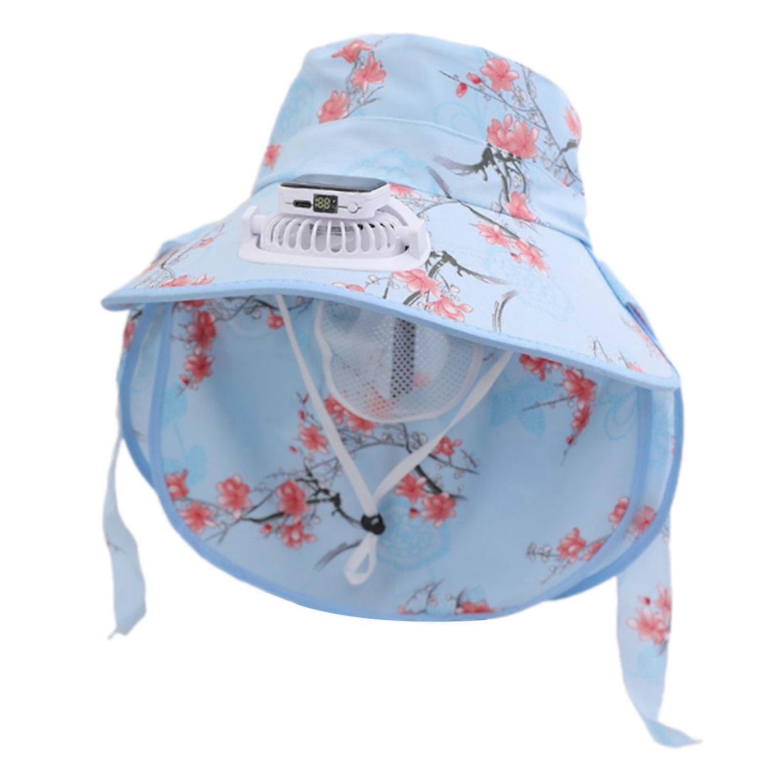 Solar Charging Summer Cooling Fan Hat Sun Protection Rechargeable Fan Hat For Cycling Hiking with Neckcover for Adult Sky Blue