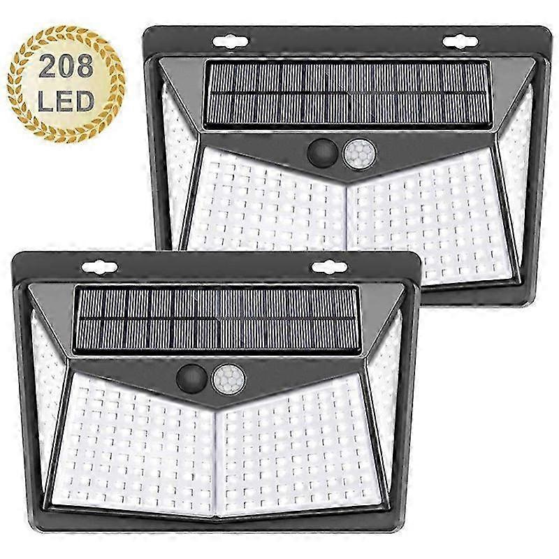 Solar Outdoor Lights 2 Pack LED Wall Pack Lamp 208LED Solar Powered Waterproof Outside Lights for Garden Backyard Patio Yard Stair Step Wall Railing P