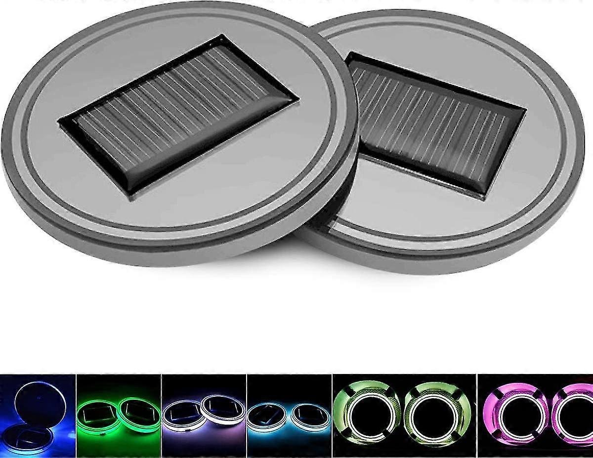 Solar Led Cup Holder Light, 2x Colorful Led Car Glass Holder Pad Mat With Waterproof Bottle Drinks Coaster, Mini Usb Rechargeable Interior Atmo