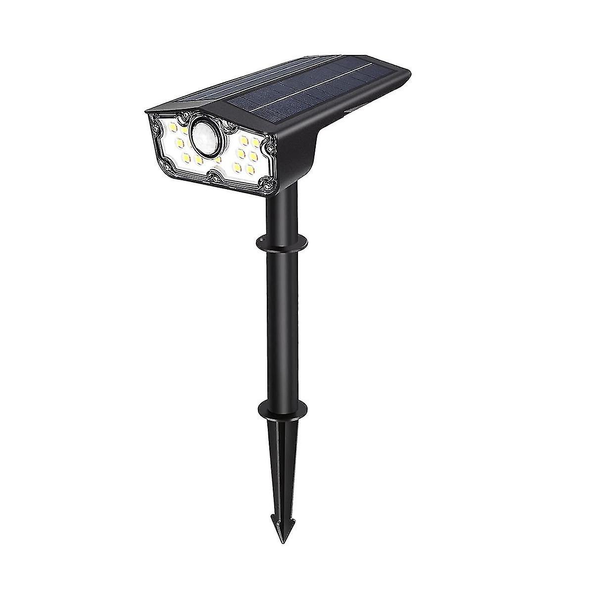 [High Quality&Ultra Bright] waterproof outdoor solar spotlights with corrosion resistant abs shell and sturdy stake is more durable,larger solar panel can more sunlight in daytime and it in a rechargeable battery, solar garden lights also use high-power LED,it means solar landscape spotlights can and brighter lighting range for your home after charging 6-8hours during the day,you can use it as a pathway lights,lawn lights,porch lights,step lights. [Upgrade PIR Motion Sensor]Different from ordinary solar pathway lights with 90sensing angle and /10ft sensing distance, outdoor solar motion lights have high-precision and high-sensitivity PIR motion sensor that can detect 150 angles and 15m/49.2ft distances,15s lighting in each detection.The sensing frequency is as high as 900 /day, others brand only 200 .You can use it to the path, sidewalk, step, wall, courtyards. [2 Mounting Ways&IP68 Waterproof]You can insert these solar yard lights into the ground with attached stakes or mount . With new high-impact ABS plastic and advanced waterproof technology, solar backyard lights not only reach IP68 waterproof rating,high temperature resistance,snow and frost resistance, also can reach a service life of 50000+ hours, solar walkway lights are widely used in , backyard, entryway, pool, etc. color:Black Material:ABS+PC size:328 x 138 x 104mm Package Contents: 1 x lawn lamp Only the above package content, other products are not included. Note: Light reflection and different displays may cause the color of the item in the picture a little different from the real thing. The measurement allowed error is +/- 1-3cm.