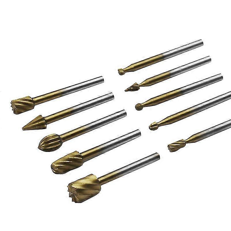 Rotary Bits Burr Set Shank For Diy Woodworking, Carving, Engraving, Drilling(10pcs, Gold)