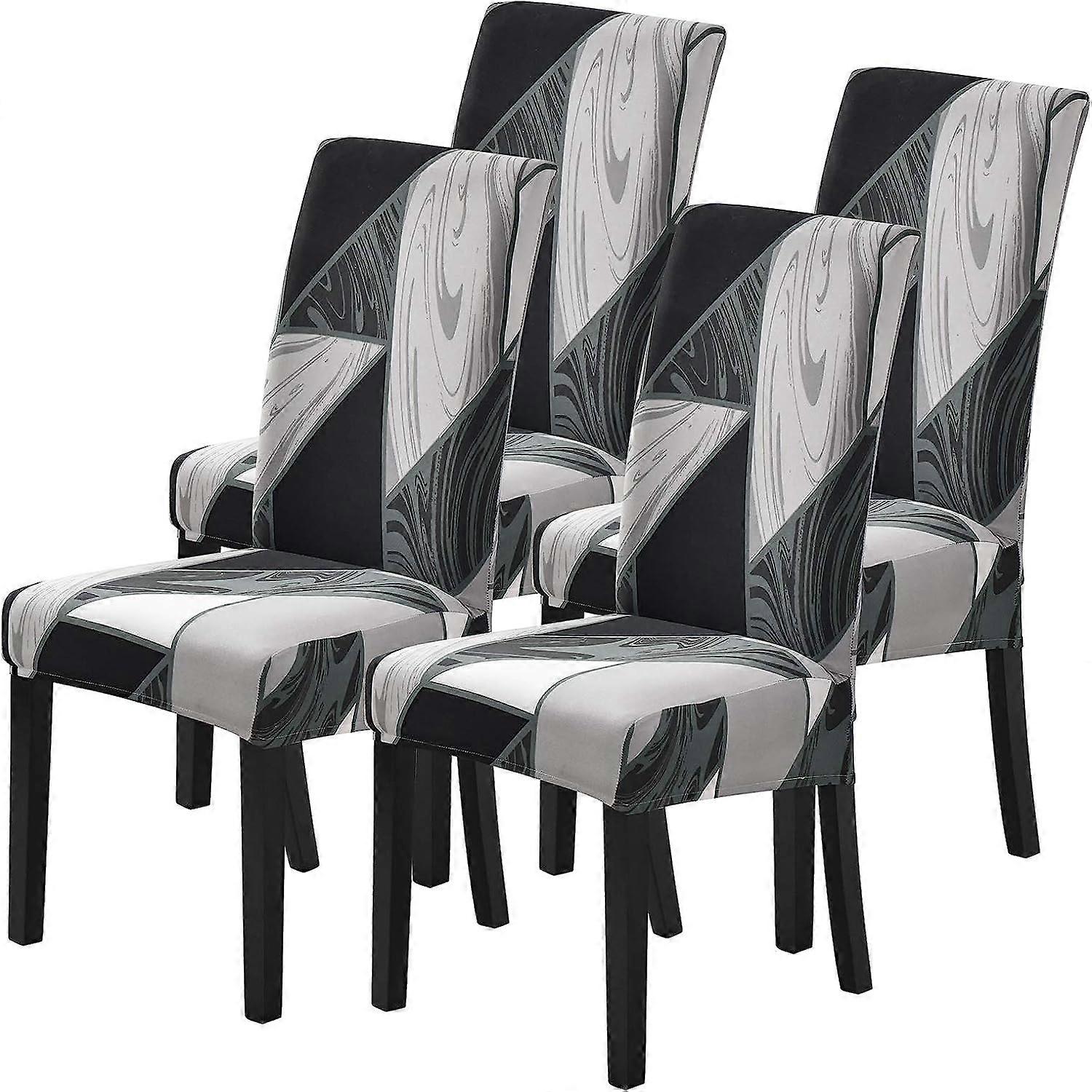 Dining Chair Slipcovers Stretch 4 Pieces Universal Chair Cover Printed Non-Slip Chair Cover for Home Hotel Restaurant Decor Gray Feather