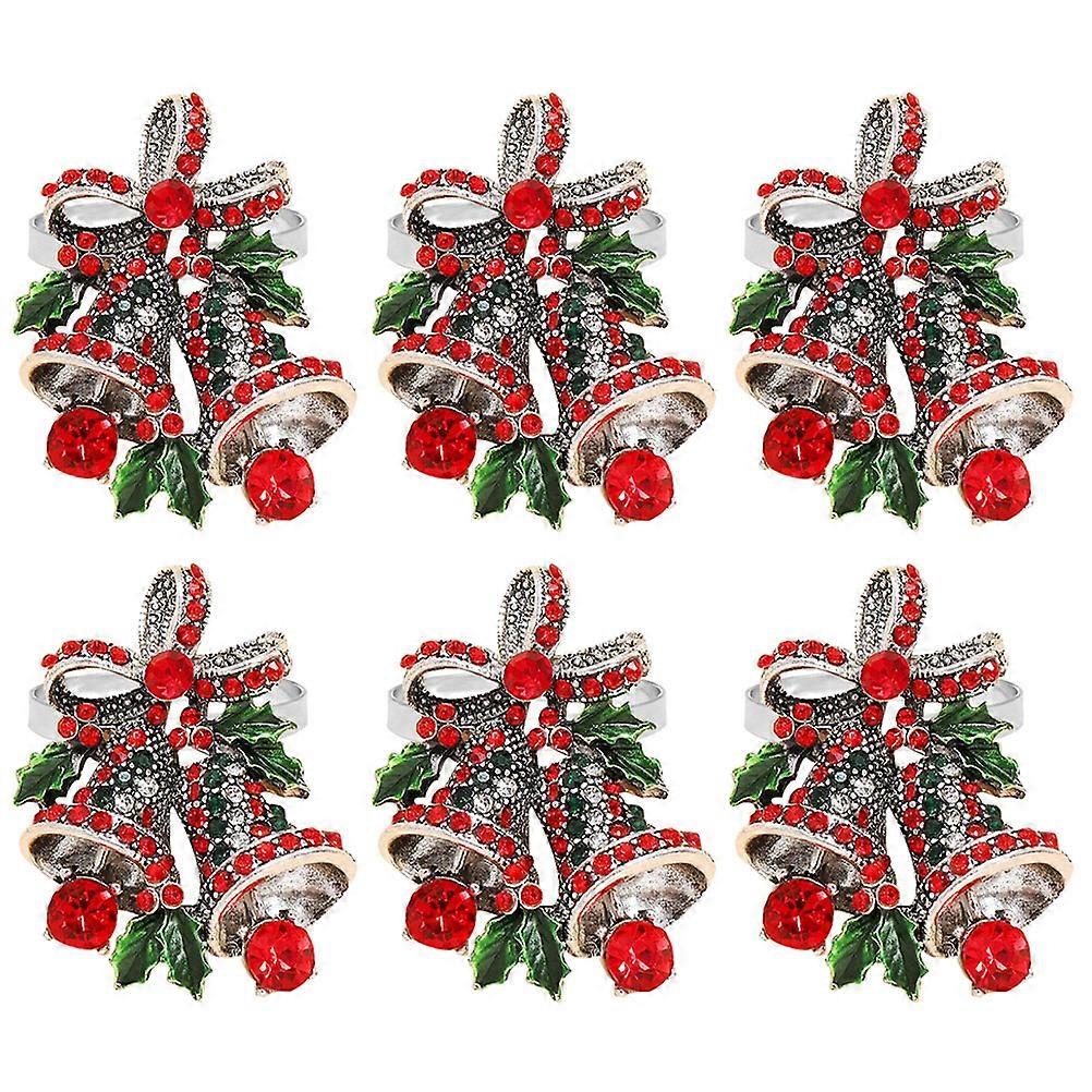 Dining Table Napkin Ring Holder Bell Shape Napkin Rings Red Color 6Pcs Christmas Party Decoration