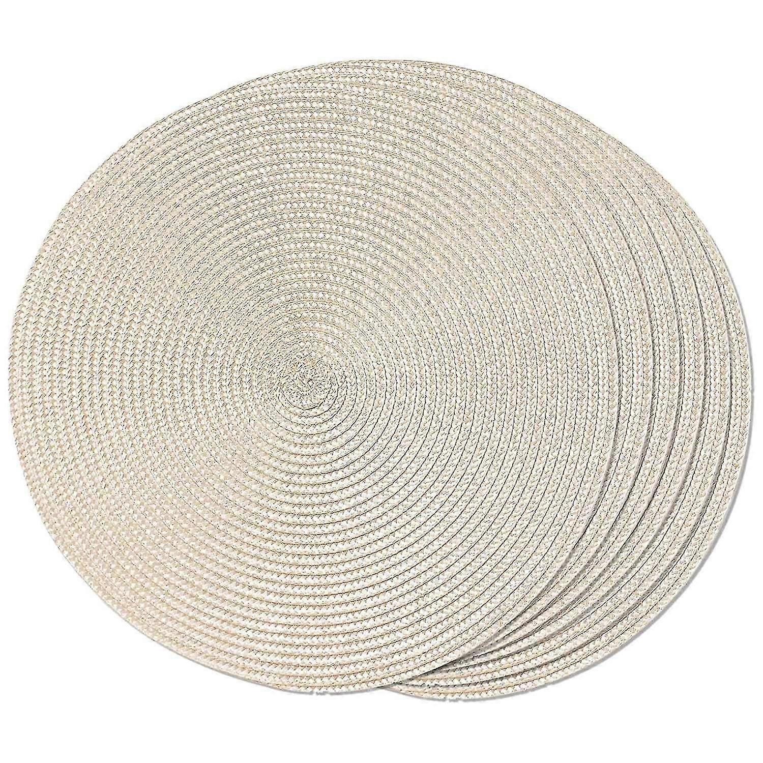 Round Braided Placemats Set Of 6 Table Mats For Dining Tables Woven Washable Non-slip Place Mats 15 (haoyi