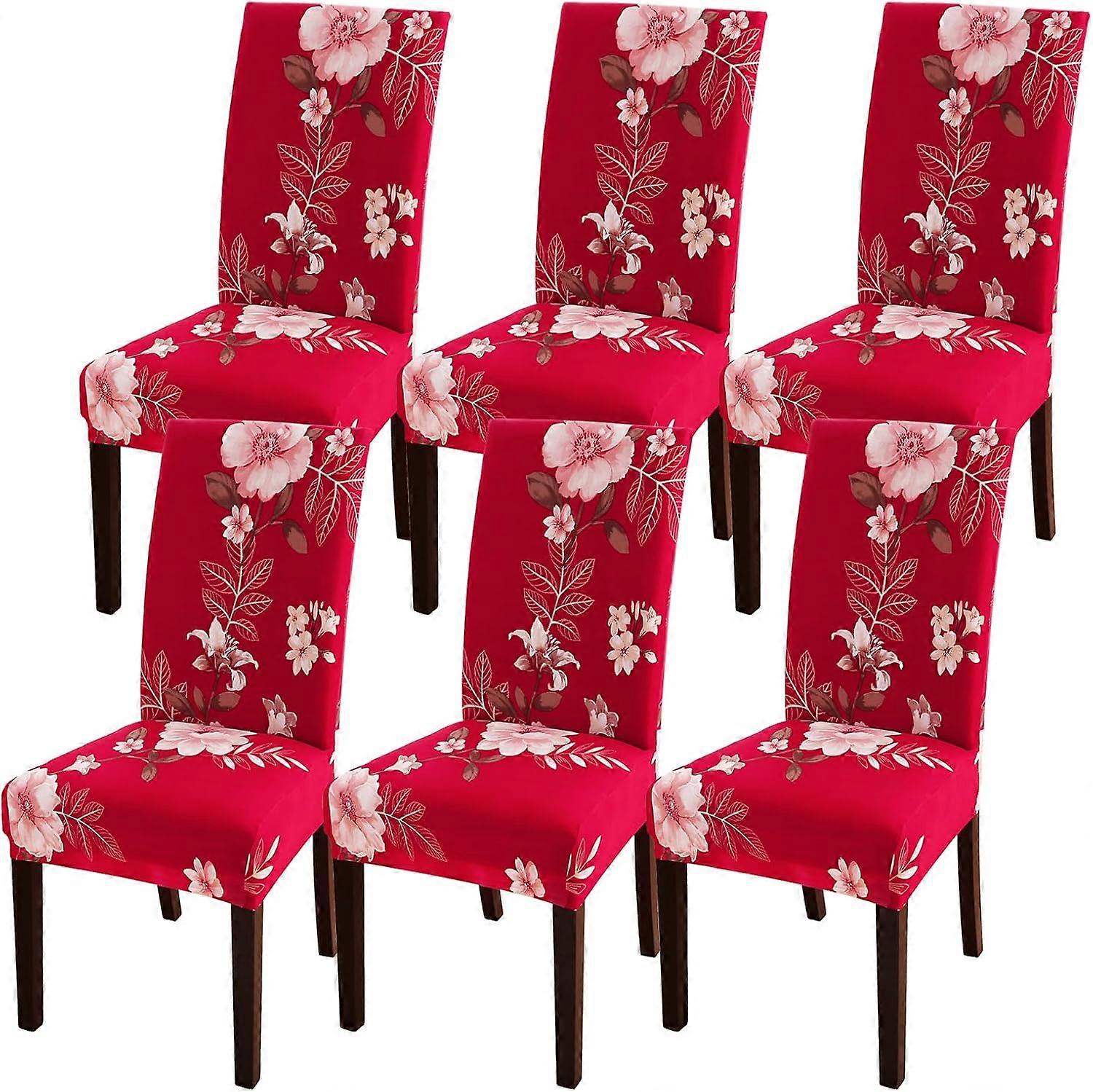 Dining Room Chair Slipcovers Set of 6, Stretch Soft Spandex Removable Washable Chair Slipcovers for Dining Room (Beautiful Years Red, Set of 6)