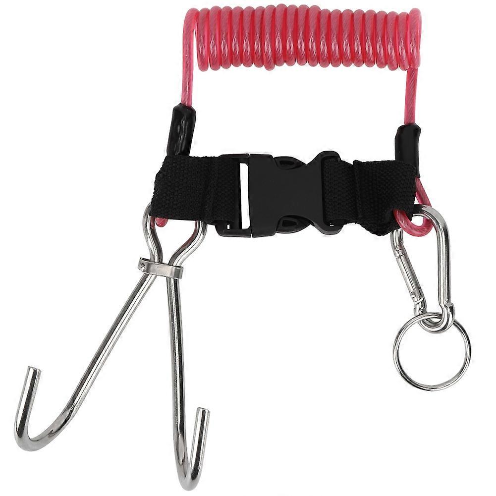Stainless Steel Marine Sports Reef Double Hook with Spring Rope for Diving Scuba AccessoriesTransparent Pink