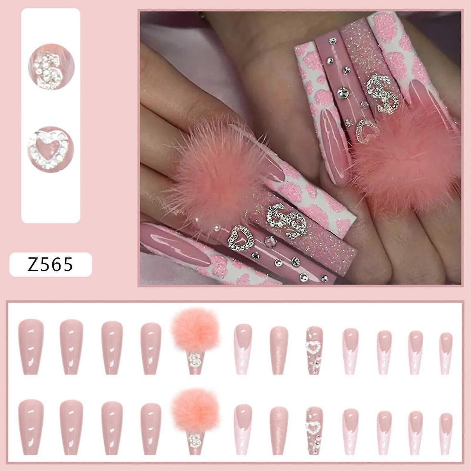 Diamond Decoration False Nails Unique Trendy Pattern Nail Pieces Jelly Glue Model