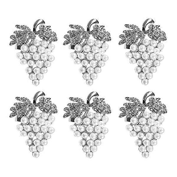 Set of 6 Diamond Pearl Grape Napkin Ring Metal Napkin Clasp fo Thick Silver