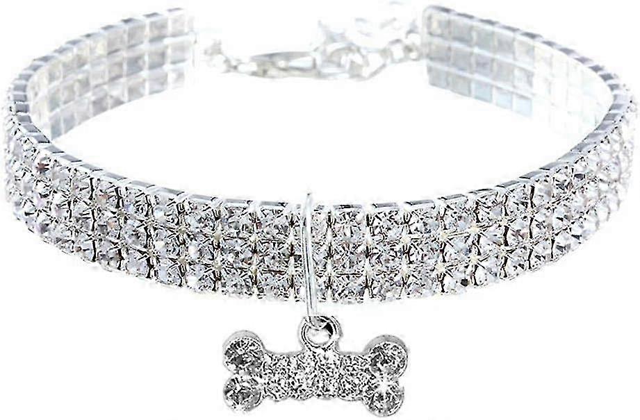Adjustable Pet Collar with Diamonds, Elastic Bone Pendant for Cats and Dogs