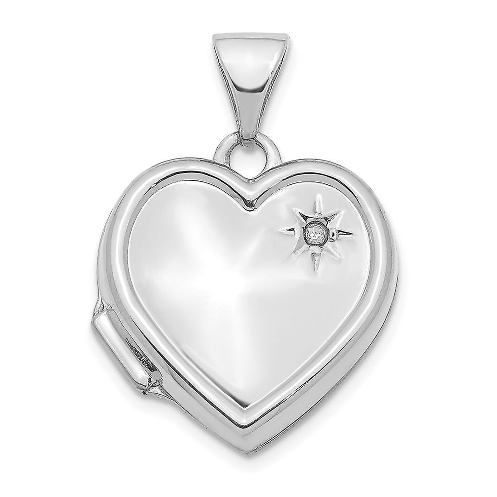 14k White Gold With Diamond 16mm Love Heart Locket Pendant-Locket Necklace for Women - .005 dwt