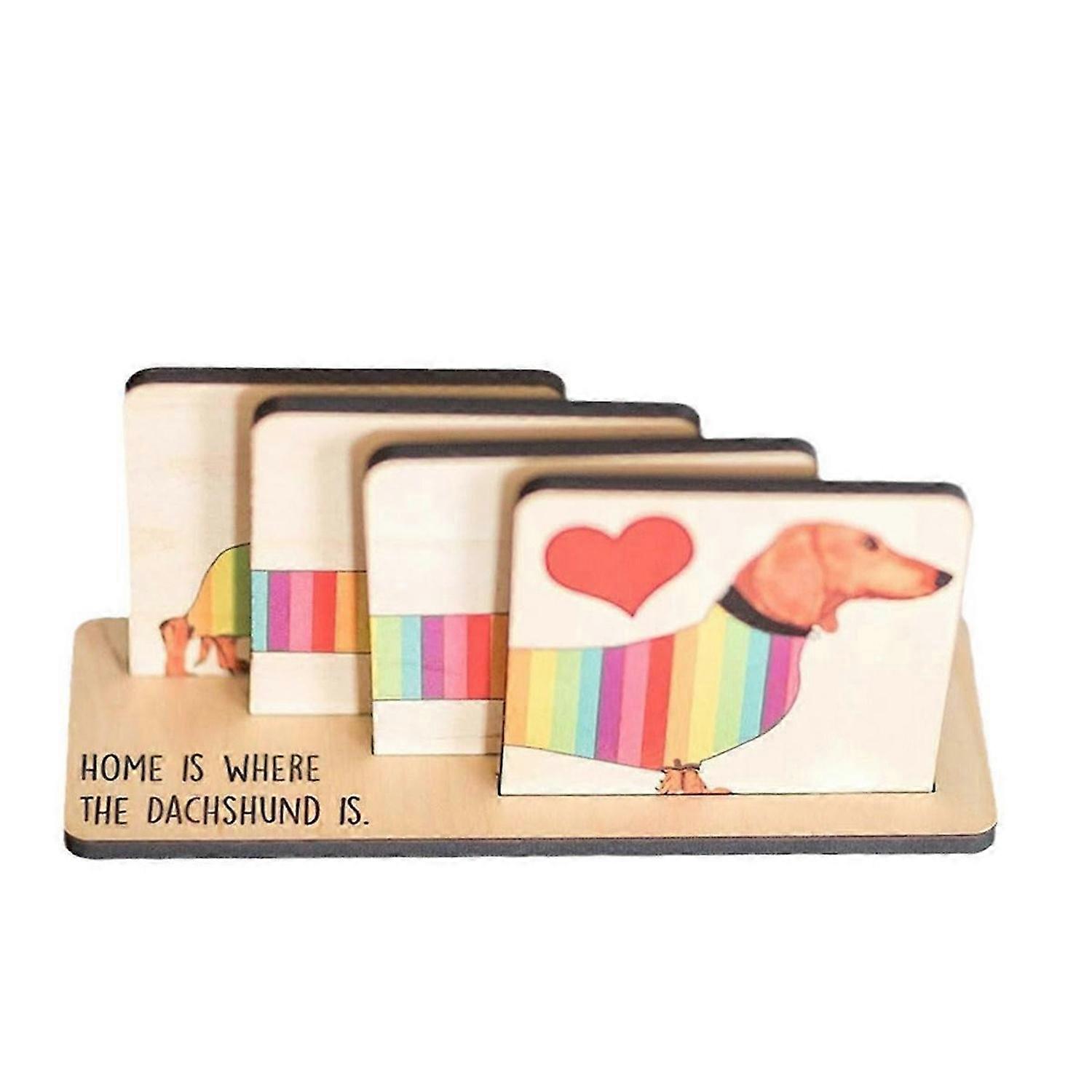 Set of 4 Dachshund Coasters with Holder