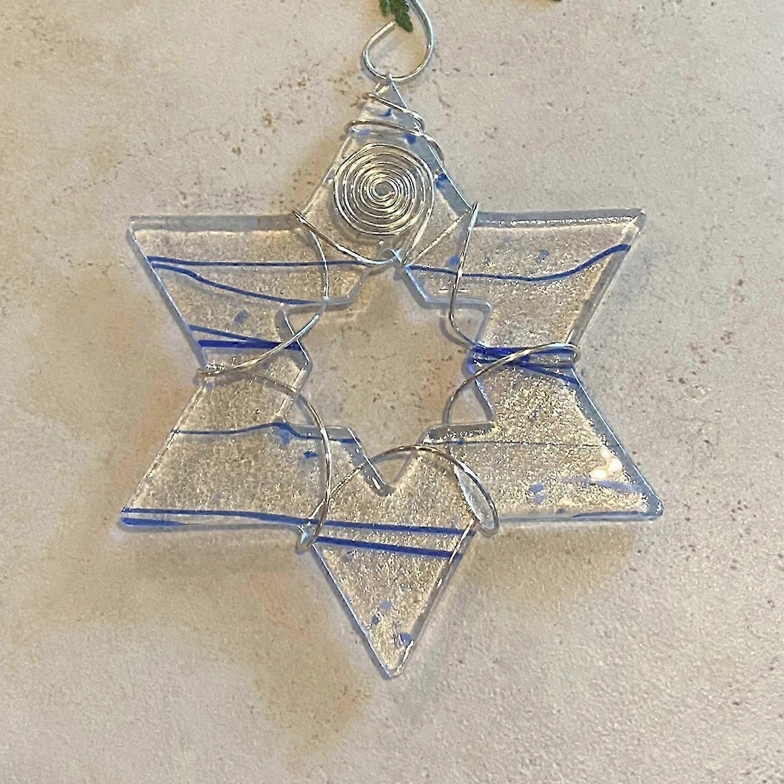 Star Of David Ornament And Sun Catcher with Hooks, Jewish Star Stained Glass Hanging Ornament, 2024 Glass Star Of David for Valentine's Day