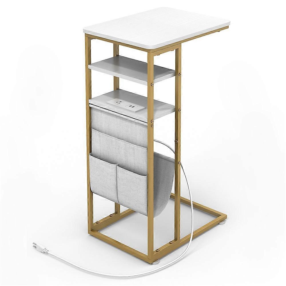 Double Column C-Shaped Side Table 40x30x71cm Tablet with Power Outlet / Oxford Fabric Storage Bag