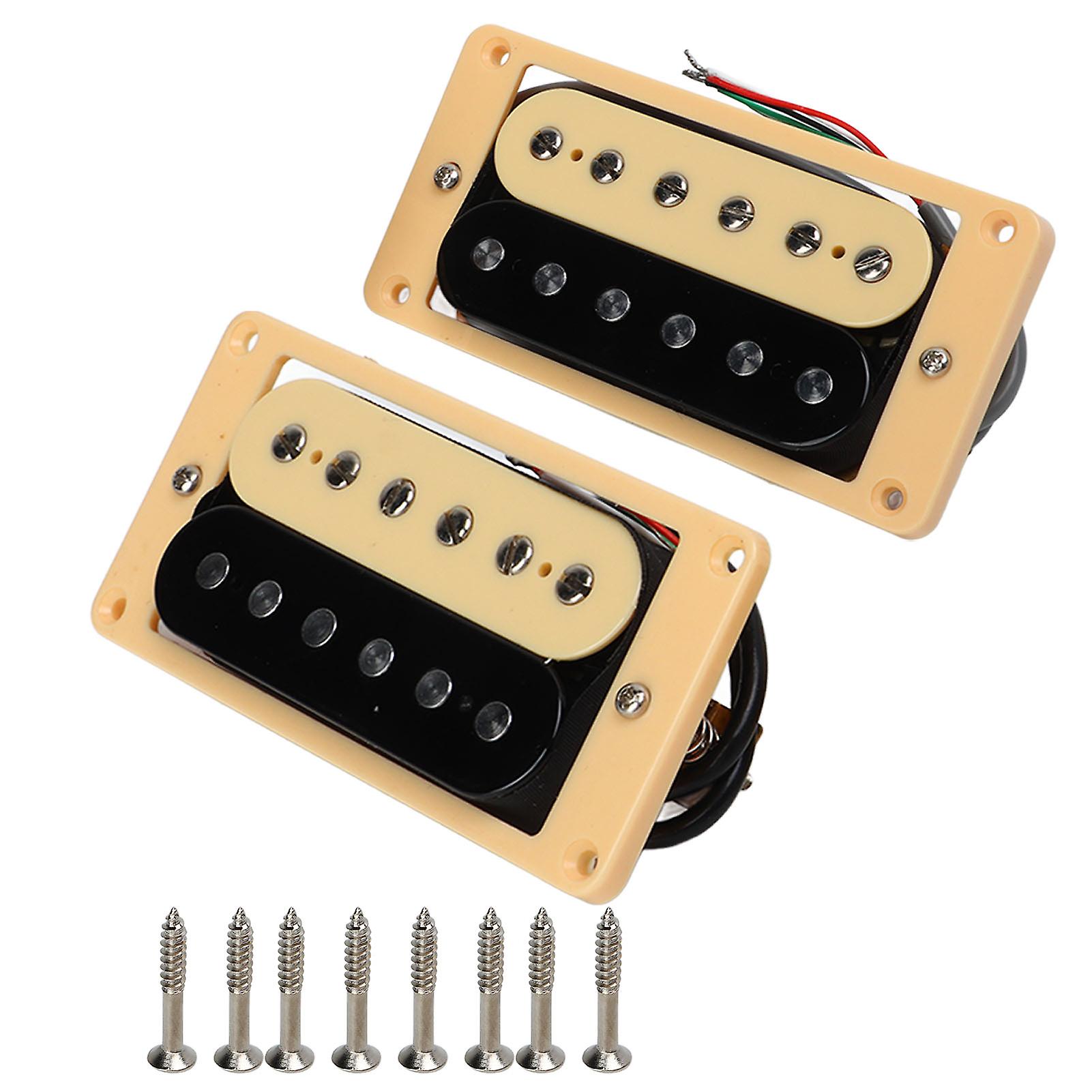 1、UNIVERSAL SET: This is a set of humbucking neck and bridge pickups that will fit most electric guitar parts replacement. 2、BEAUTIFUL APPEARANCE: The pickups have a well designed look that makes them look great and will adorn your guitar well. 3、PLASTIC AND METAL: Both the metal part and the plastic part of the pickup have good wear resistance, are not easy to break, and are durable. 4、EASY TO INSTALL: You simply disconnect the pre soldered wires and split the pickup into individual coils for installation. 5、COMMON ACCESSORIES: Pickups are a common guitar accessory that can enhance the performance of your guitar and are very useful accessories. 2 x Pickup8 x Screw Item Type: Double Coil Pickup SetMaterial: Plastic and metal