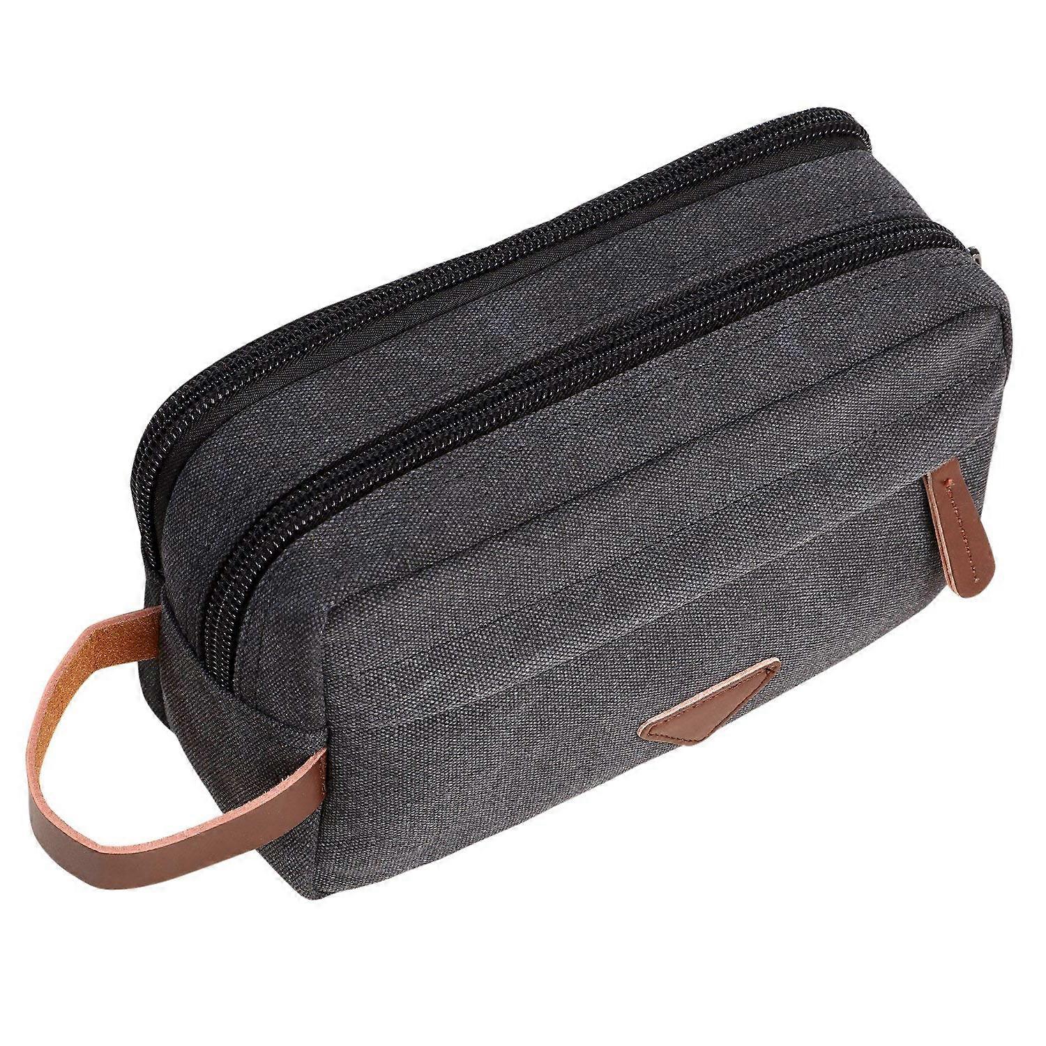High density 16oz canvas and high quality leather with tight stitching,Thick Large Zipper makes it easy to zip and unzip. Perfect Dimension: 9.5 Inch L X 4 Inch W X 5.5 Inch H,A great size to store in a duffel bag. This toiletry kit has 2 main zippered compartments, 1 front zippered pocket and 1 built-in pocket. Toiletry organizer is roomy enough to store personal/family toiletries, cosmetics, makups, shaving kits, small bathroom items. MULTIFUNCTIONAL BAG: It can used as A Toiletry Wash Bag, Travel Storage Organizer, Makeup Organizer, bathroom bags,Cosmetic Bag, Portable Travel Kit Organizer, Household Storage Pack, Shaving Kit Bag, Dopp Kit Etc.