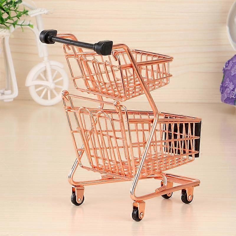 Double-Decker Mini Trolley Ornaments Children Toys Simulation Shopping Cart 1. Material: iron, resin 2. Process: Iron plating 3. Application: home decoration, creative decoration, storage 4. Features: one thing with multiple functions, exquisite and compact, convenient to store sundries 5. Size: 13.5x9.5x17 cm 6. Weight: 255g