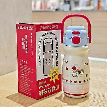 Double Drink Bottle Thermos Cup Cartoon Portable Children's Vacuum Water Cup Stainless Steel Straw Cup Student Cup